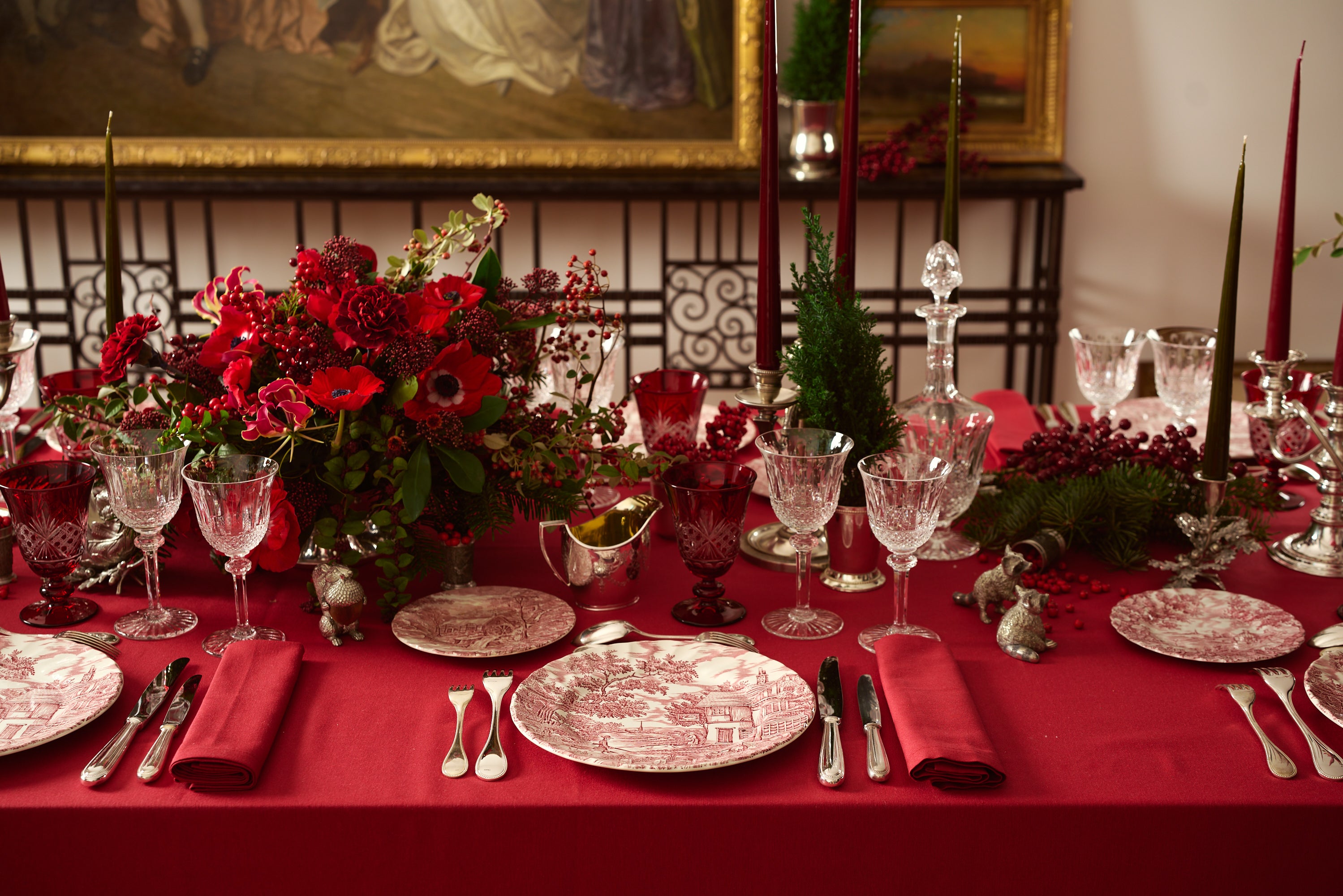 De Chantilly au bois de Blenheim, les cors de chasse claironnent au grand air les festins de Saint Hubert, le cœur de l’automne et l’arrivée des vents froids. Les tours de Chambord, comme les guetteurs des grandes migrations, oriflammes aux pommes de pin annonçant les nouvelles fantastiques et les drames shakespeariens, se dressent, fières, hiératiques et veilleuses, et dans leurs carreaux de fenêtres surplombant les bois, la lumière dorée des bougies, les grands lustres aux ampoules d’or, les clairs-obscurs à la Georges de La Tour des veillées de Noël. La vieille comtesse douairière, aux chignons griffés d’une tiare à la Lady Edwina Mountbatten, trône fièrement au milieu de cette horde aux étreintes briochées et aux regards se lançant des couteaux. La grande grille aux gonds grinçants et gelée par le givre est poussée, la neige en duvet d’oie transforme le parc en fantaisie nuageuse, les tours en pavlova cruelle surplombées d’un marron comme le sein d’Agnès Sorel, le feu crépite tandis que les portraits d’une famille, les trophées de chasse et les massacres chuchotent en secret les intrigues nocturnes dont ils sont témoins. De Meurtre dans un jardin anglais à Gosford Park, de Vipère au poing à Hercule Poirot, quelle tendresse plus meurtrière que celle qui apparaît les soirs de Noël, sur cette scène où les sourires immortalisés en photo font oublier les bruits de revolver et les empoisonnements ? Et la vieille comtesse, regardant le feu de la cheminée, sourit en égrenant ses perles comme un chapelet.